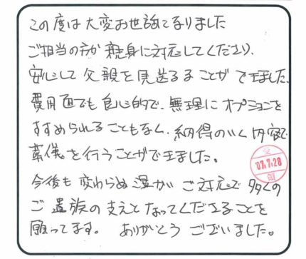 面会や付添いに関しましても「体力的に少しの時間でよい」「仕事もあり、毎日は難しい」「出棺の際は立ち会えない」などご要望がございましたら、おくりて(大阪直葬センター)スタッフへご相談ください。大阪市内だけで、毎年200通以上、累計3万通のお手紙をいただいています。